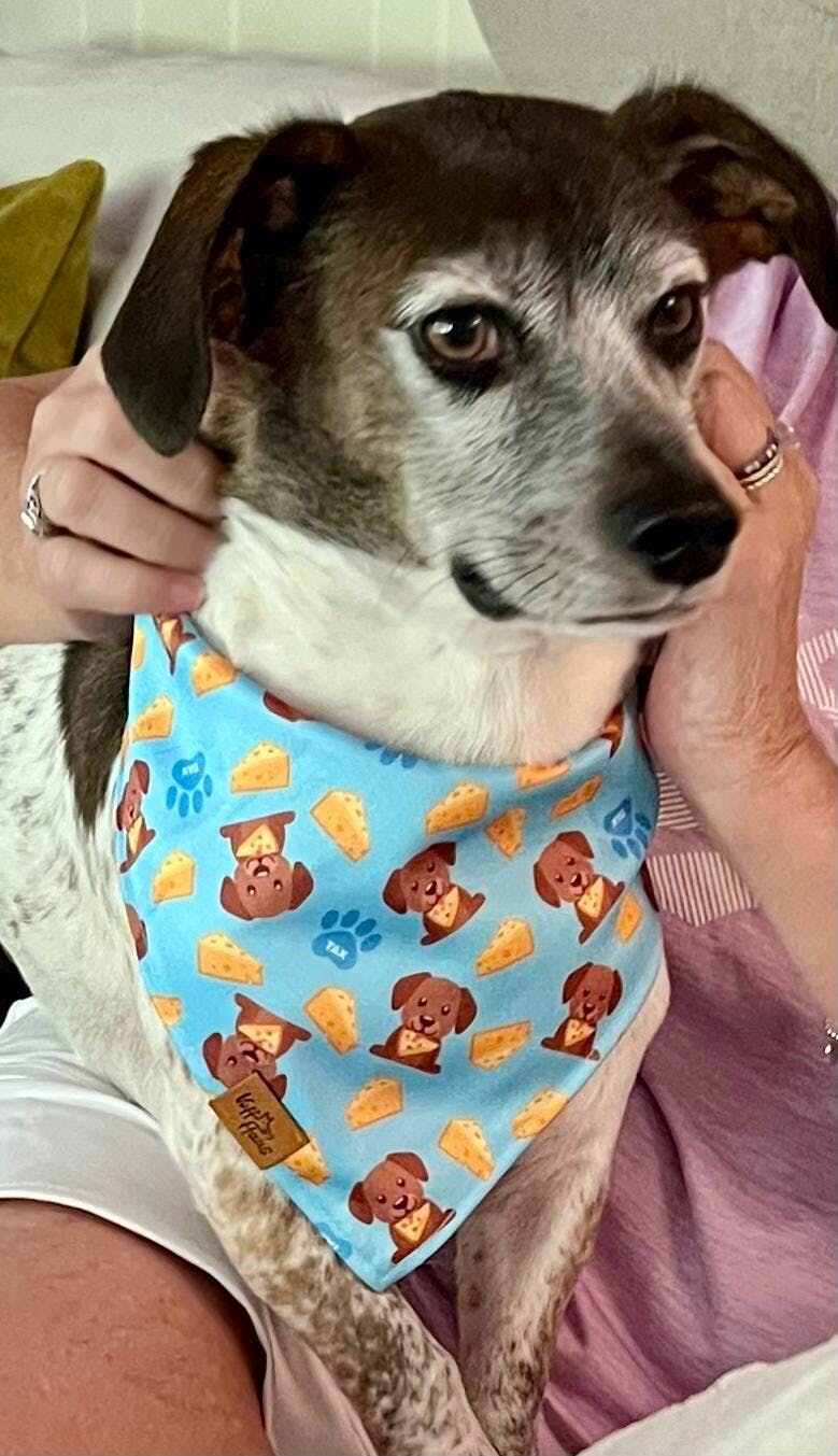 For the pups who can’t resist a snack—or stealing one when you’re not looking—the Cheese Snatcher reversible dog bandana is a playful ode to every food-loving friend. Covered in cheerful pups and golden wedges of cheese, it’s the perfect mix of charm and mischief. With one side in soft peach and the other in bold blue, this bandana adds a burst of personality whether your dog is begging at the table, strutting through the park, or posing for photos. The Cheese Snatcher brings fun, color, and plenty of character to any occasion.
